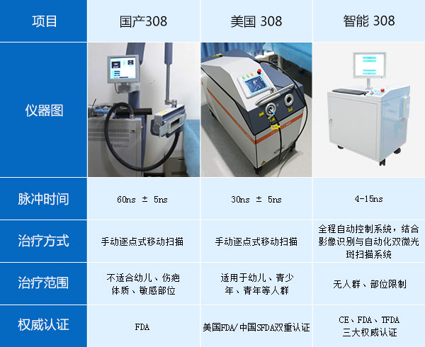 智能308是根据皮肤条件有计划的进行皮肤治疗的仪器,利用移动的紫外光(UV)激光束飞快的扫过皮肤上的病患区域,自动选中病灶区域,选择性照射病灶区域,避免损伤健康皮肤的同时,达到治疗的效果。>>>医师在线:点击全面了解智能308治疗白斑问题