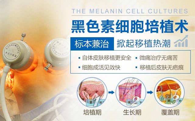 密集培植:黑色素细胞培植术,从患者自身细胞中分离处活性黑色素细胞,进行培养繁殖,精准种植于白癜风灶等一些列诊疗技术,提高治疗效果。